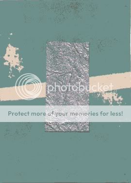 This started out as me trying out my new "fluid chalk" stamp pad, on a piece of beige paper. I liked the accidental symmetry, and added a bit of silver handmade paper to set it off.